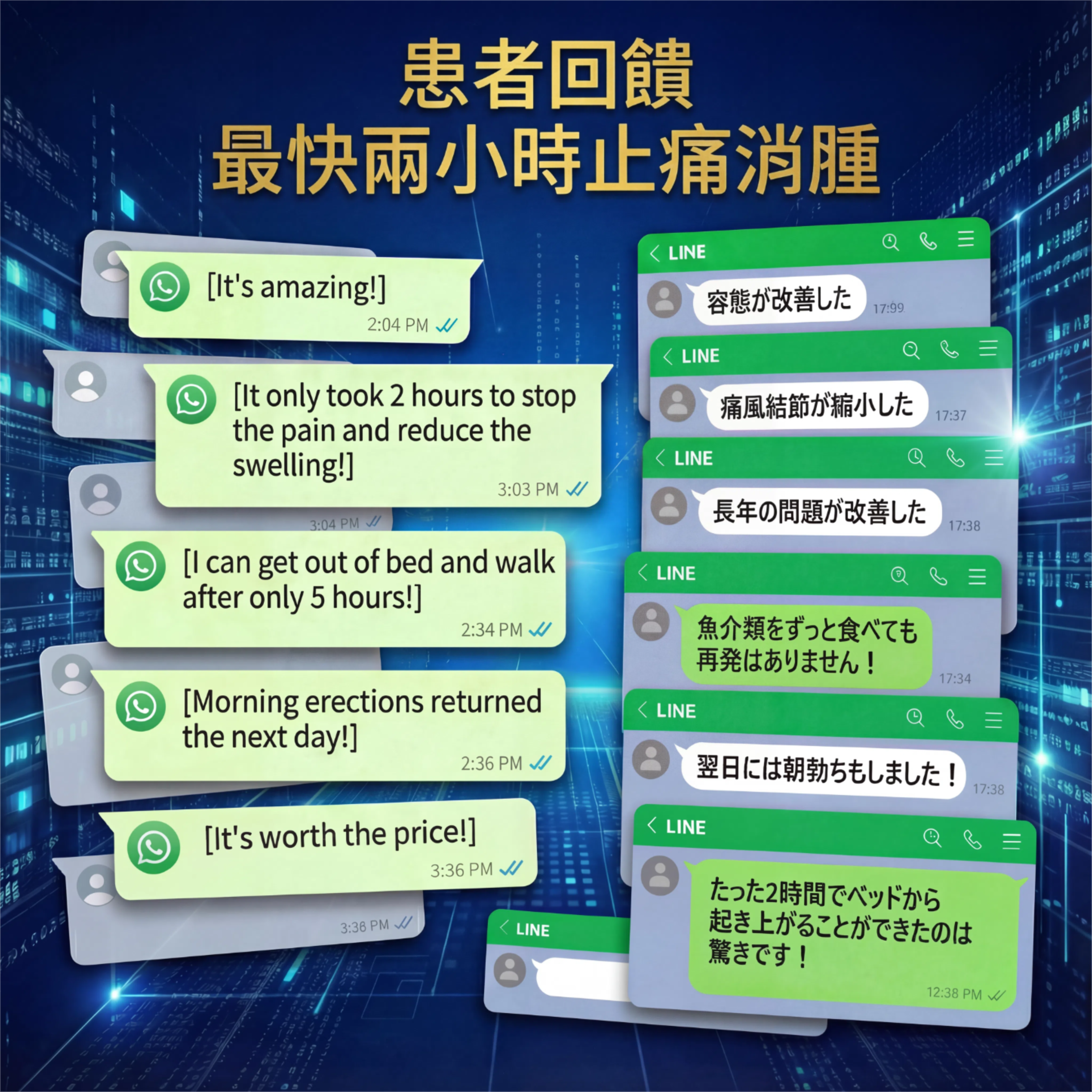 來自美國加州的Tom,服無痛靈丸後,2小時後止疼消腫了。